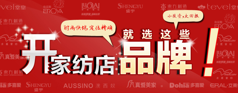 被稱為“朝陽產業”的家紡行業,在近幾年發展迅猛,國內的很多地區都有具有代表性的家紡品牌,如果你想踏入家紡加盟這個領域,想要找個不錯的家紡品牌,就一定要對自己所在城市的家紡市場做一定的了解,做到心里有底。
