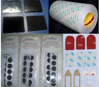 背膠魔術貼可以根據客人所需貼的產品材料來配制相應的膠水,可以沖壓成為各種規格和形狀,可用作櫈椅腳的保護墊,也可保護高級音像等家用電的支撐,也可用于雨衣、衣服手袋上面,只需簡易地揭開魔術貼背面的離形油紙,即可粘貼於各類型光滑潔淨的物件上,特別適用於紙品、PVC 皮、PP、ABS 上,粘貼後 1 小時即可達到 90% 的粘性,方便快捷,用途非常廣。