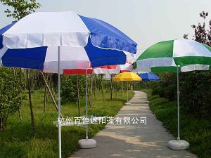 杭州百佳遮陽蓬有限公司專業(yè)生產(chǎn)太陽傘,傘骨采用彈簧鋼制作而成,表面防銹、噴塑加工。底座采用水桶、傘面通過防水抗老化處理的190D、210D、420D牛津布,各種規(guī)格均可訂做。傘面根據(jù)客戶要求印刷logo和文字,具有強(qiáng)烈的視覺效果。