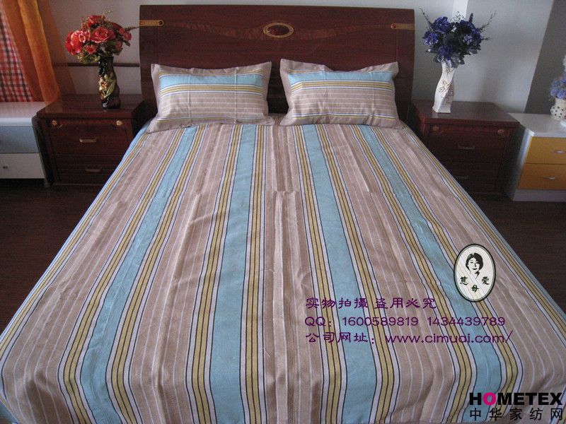 慈母愛涼席綠色天然、環(huán)保健康、主要原料是100%純棉線制成;不褪色、不易搓起、不起球、不卷邊;柔軟舒適,透氣吸汗,適用于貼身使用;吸附人體皮膚上的汗水和微汗,使體溫迅速恢復(fù)正常;鋪在床上高雅大方,現(xiàn)代時(shí)尚。