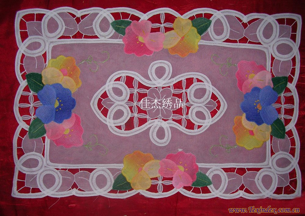補(bǔ)花盤墊  規(guī)格33*48/30*45/15*30 纖維材料100%滌 品種盤墊 織制方法補(bǔ)繡 工藝特點(diǎn)手工 產(chǎn)地山東 淄博