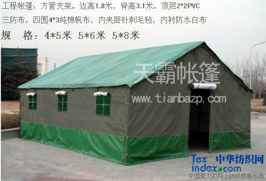 布料材質:PVC(2×2)三防布,圍墻采用純棉帆布,中間防寒氈,內襯白布,具防風防雨防撕裂。