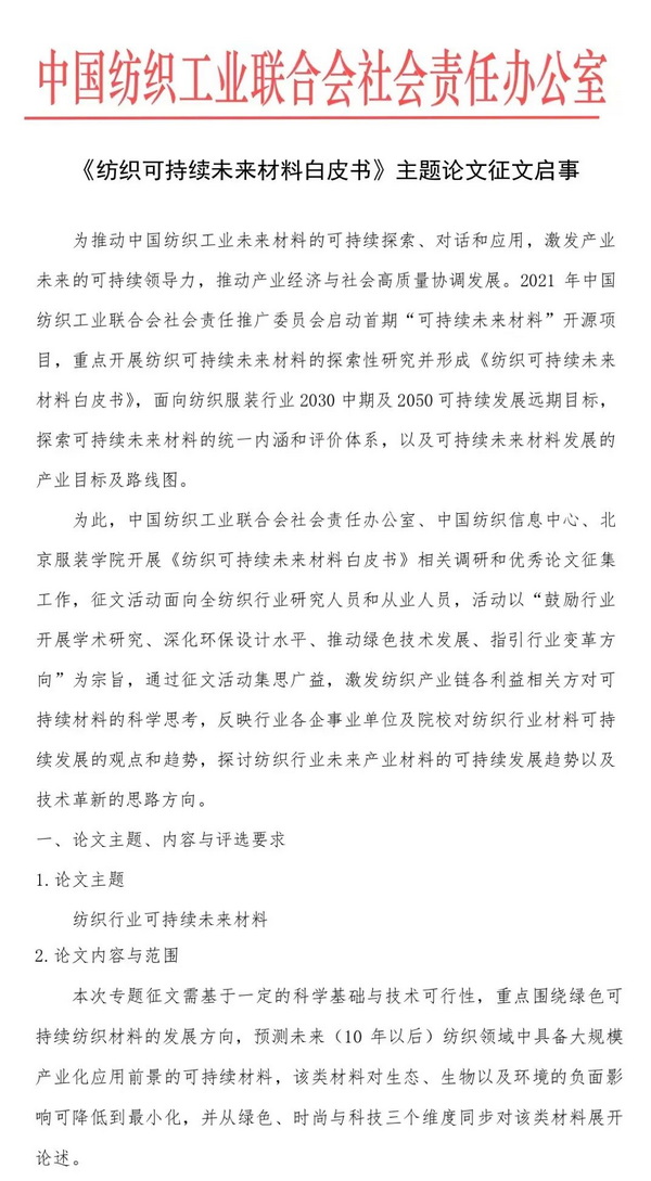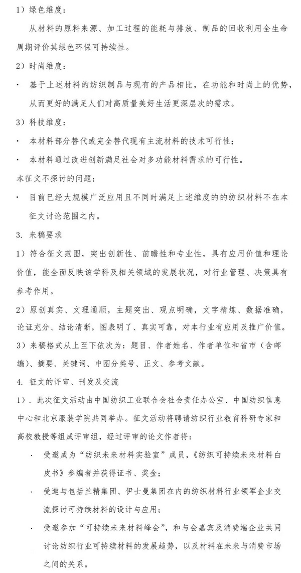《紡織可持續(xù)未來(lái)材料白皮書(shū)》征文啟事